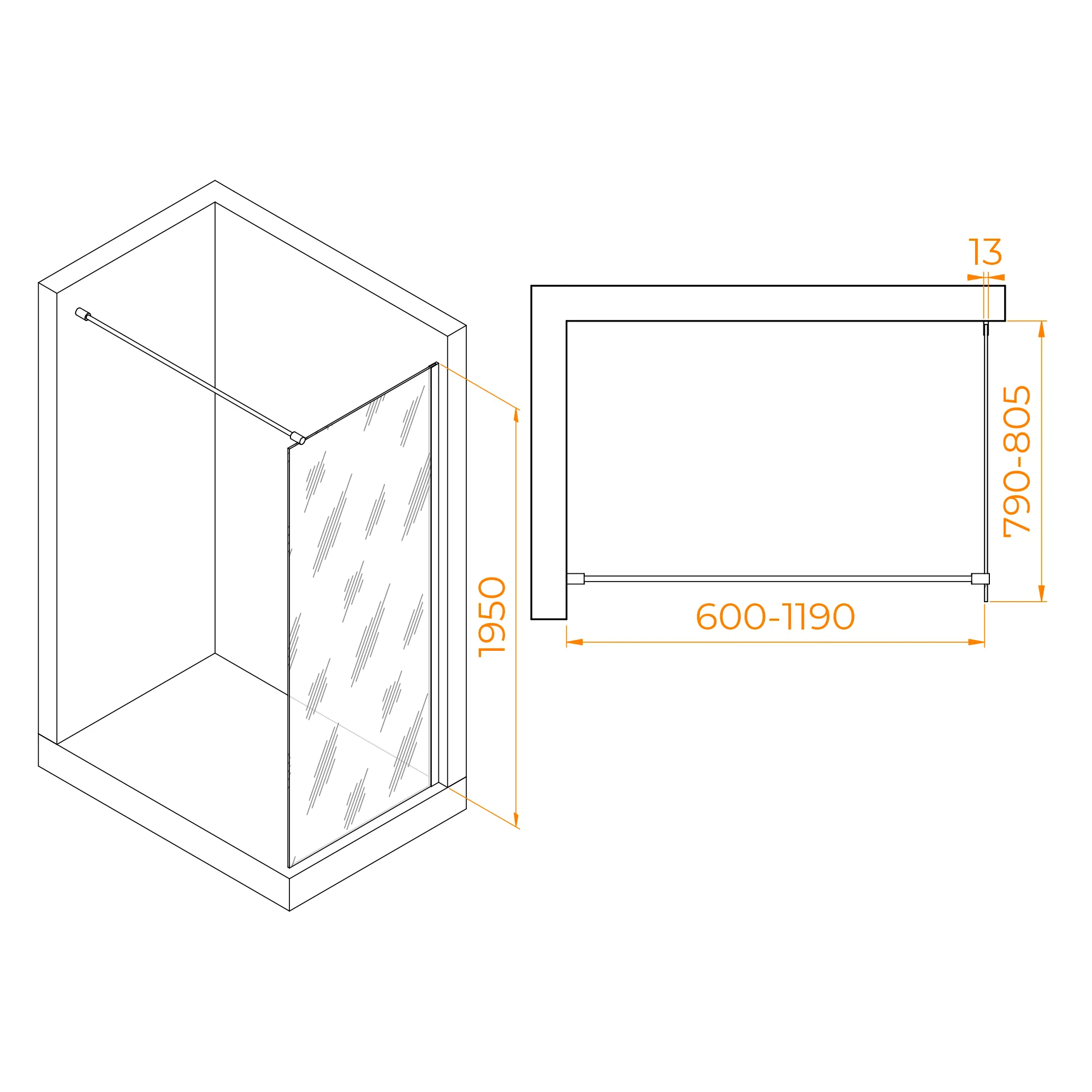 Высота перегородки для душа RGW WA-010 составляет 195 см, что обеспечивает комфортное использование для большинства людей и позволяет избежать протекания воды через край перегородки.