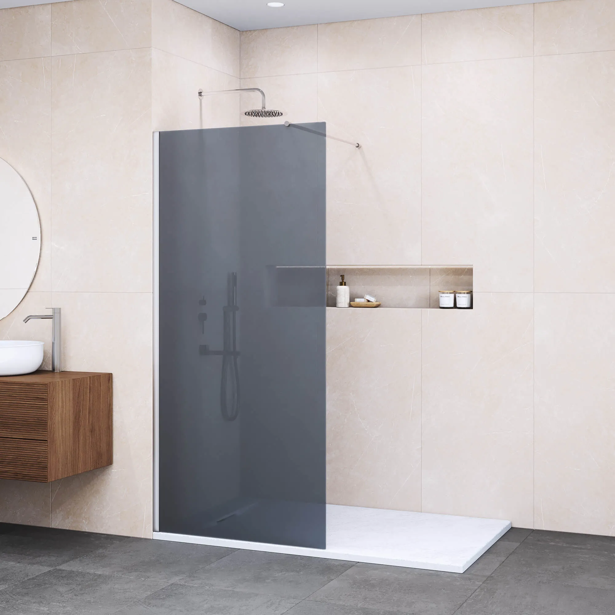 Цвет профиля перегородки для душа - хром, который является популярным выбором для современных ванных комнат. Хромированный профиль отлично сочетается с другими элементами и деталями ванных комнат, создавая цельный и элегантный образ.