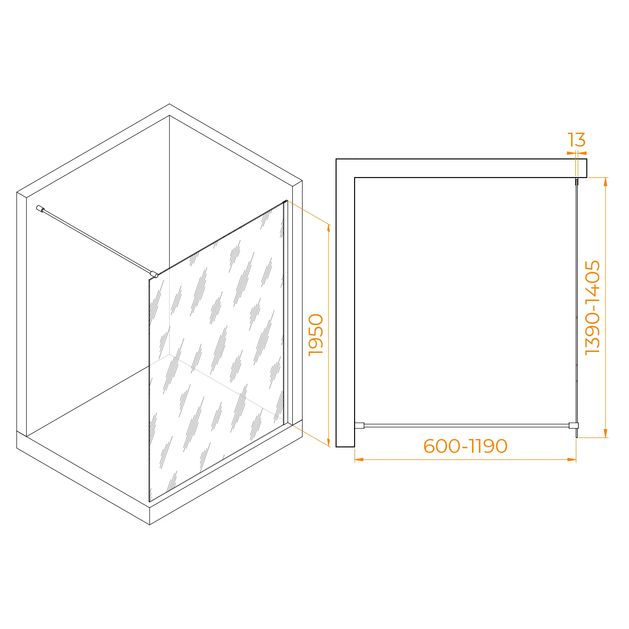Высота перегородки для душа RGW WA-010 составляет 195 см, что обеспечивает комфортное использование для большинства людей и позволяет избежать протекания воды через край перегородки.