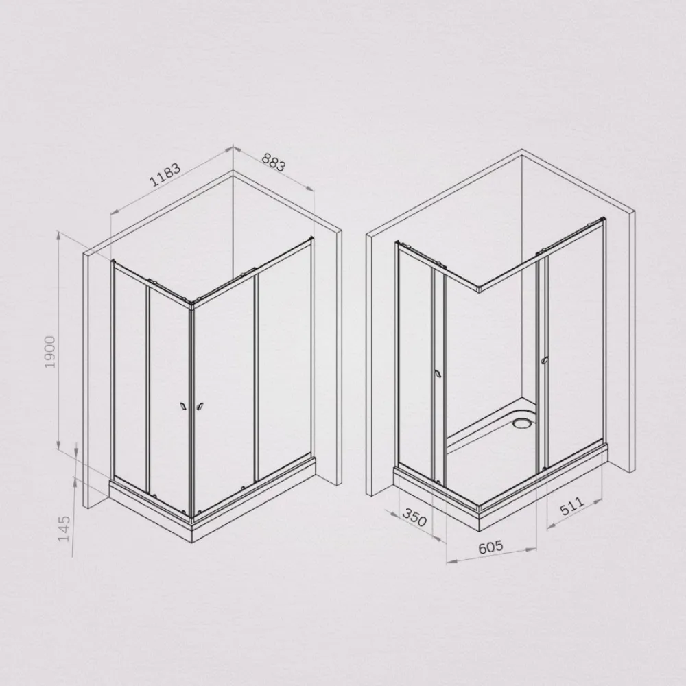 - Толщина стекла: фиксированное стекло - 4 мм, дверное стекло - 5 мм