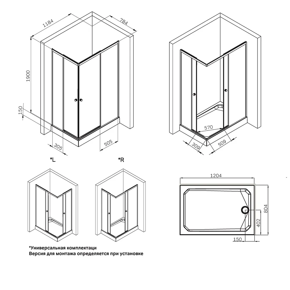 - Тип монтажа: угловой