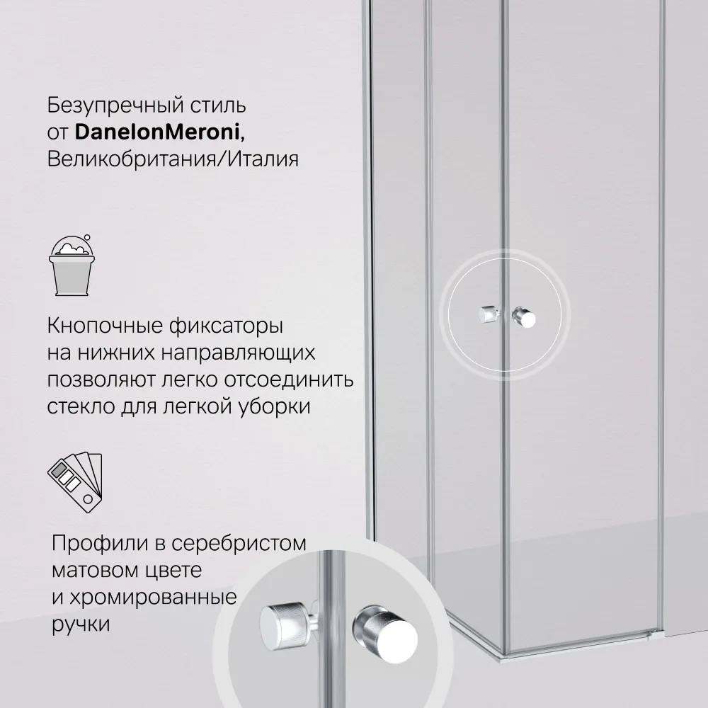 - Толщина стекла: фиксированное стекло 4 мм, дверное стекло 6 мм