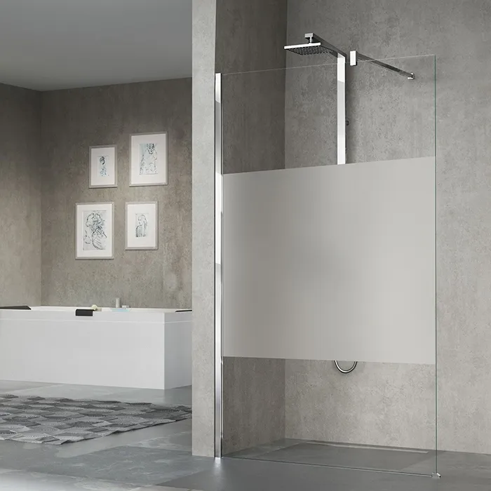 Душевое ограждение Novellini Giada H 870-885х2050, с свободным входом, с настенным кронштейном, стекло прозрачное, профиль Silver, GIADAH90-1B