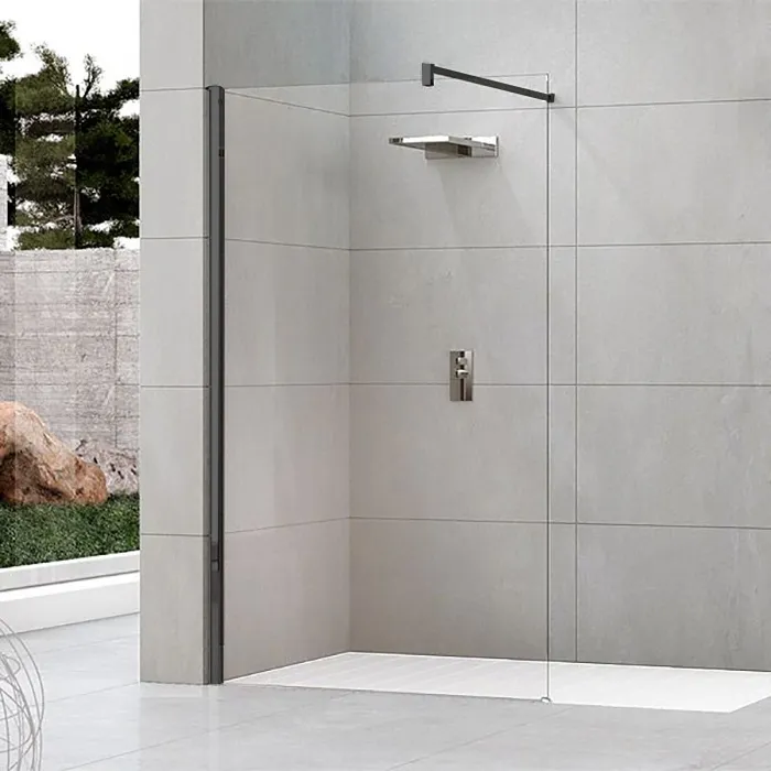 Душевое ограждение Novellini Kuadra H 1570-1600х2050, с свободным входом, с настенным кронштейном, стекло прозрачное, профиль черный матовый, KUADH160-1H