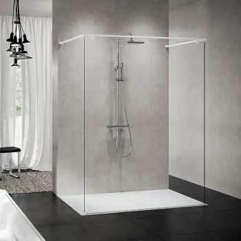 Душевое ограждение Novellini Kuadra Hf 1540х2147, с свободным входом, с полкой, стекло прозрачное, профиль белый матовый, KUADFC156PO-1U