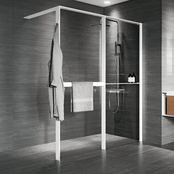 Душевое ограждение Novellini Kuadra Hwz2 1740-1770х2000, с свободным входом, правое, с полотенцедержателем и полкой, стекло прозрачн, проф бел мат, KUADHWZPSO180D-1U