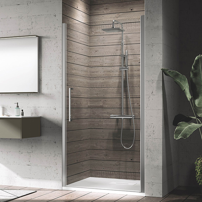 Дверь для душа Novellini Young 780-820х2000, распашная, одностворчатая, реверсивная, открывание внутрь и наружу, профиль хром, стекло прозрачное, Y21B77-1K