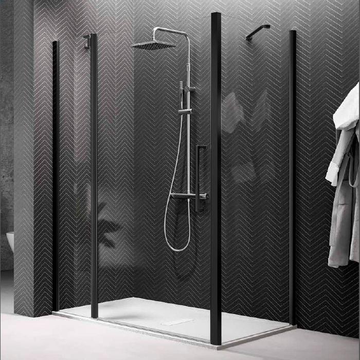 Дверь для душа с неподвижным сегментом Novellini Young 970-1010х2000, распашная, одностворчатая, реверсивная, профиль черный матов, стекло прозрач, Y22P97-1H