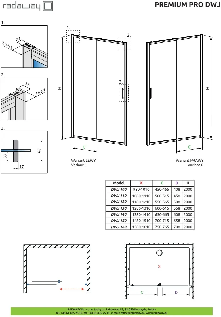 Душевая дверь Radaway Premium Pro Black DWJ 140 Left 1014140-54-01L