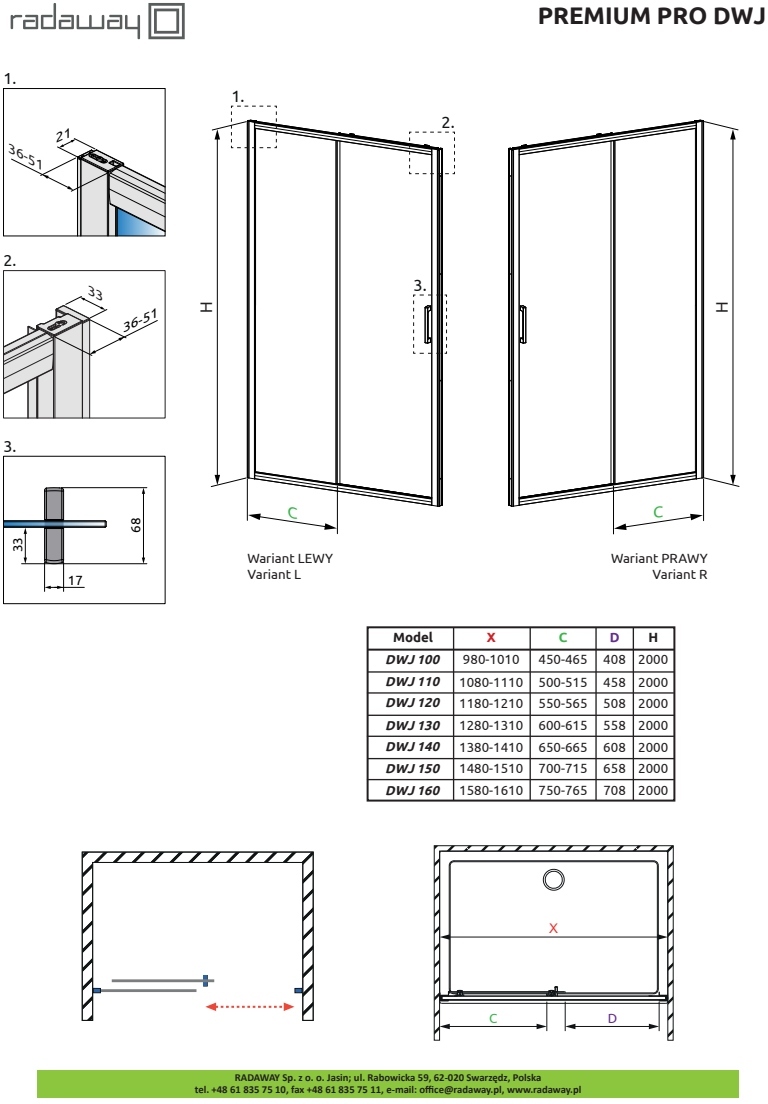 Душевая дверь Radaway Premium Pro DWJ 140 Left 1014140-01-01L