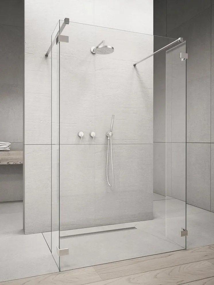 С помощью душевых перегородок типа свободный вход walk-in ванную комнату можно легко усовершенствовать в дизайнерское помещение. Такое решение становится в последнее время очень популярным так как уход за такой перегородкой минимальный. Рекомендуем ставить перегородки непосредственно на пол — для обеспечения гидроизоляции рассмотрите пожалуйста душевые плиты RadaDrain.