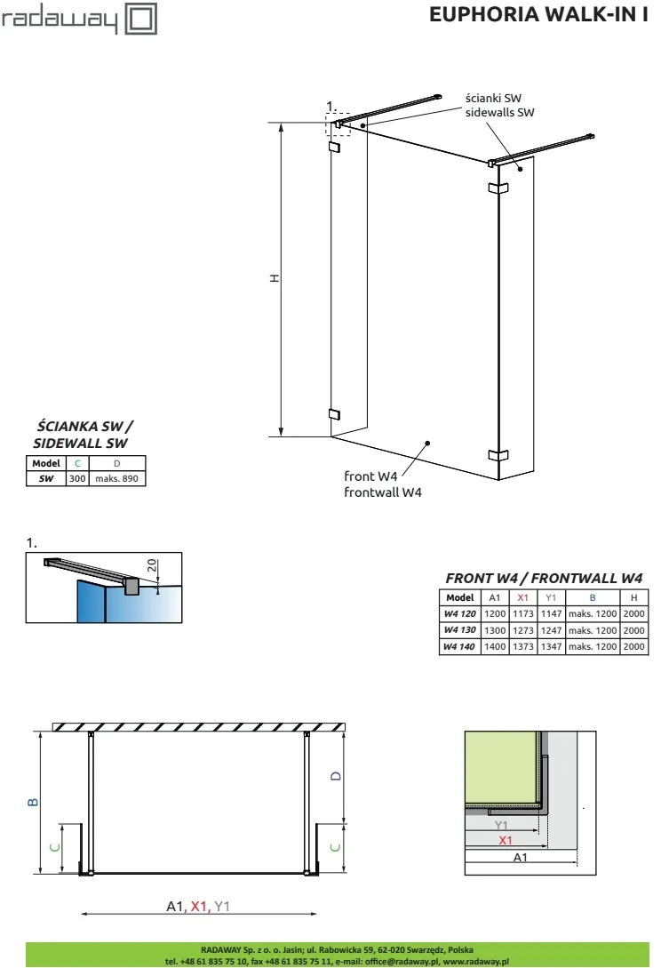 Euphoria Walk-in IV — вход сбоку.Универсальная перегородка, возможен как левосторонний, так и правосторонний монтаж.