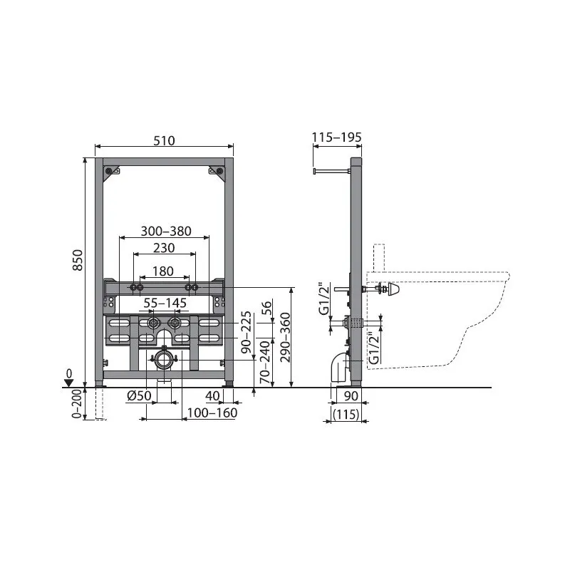 Инсталляция для биде AlcaPlast A105/850