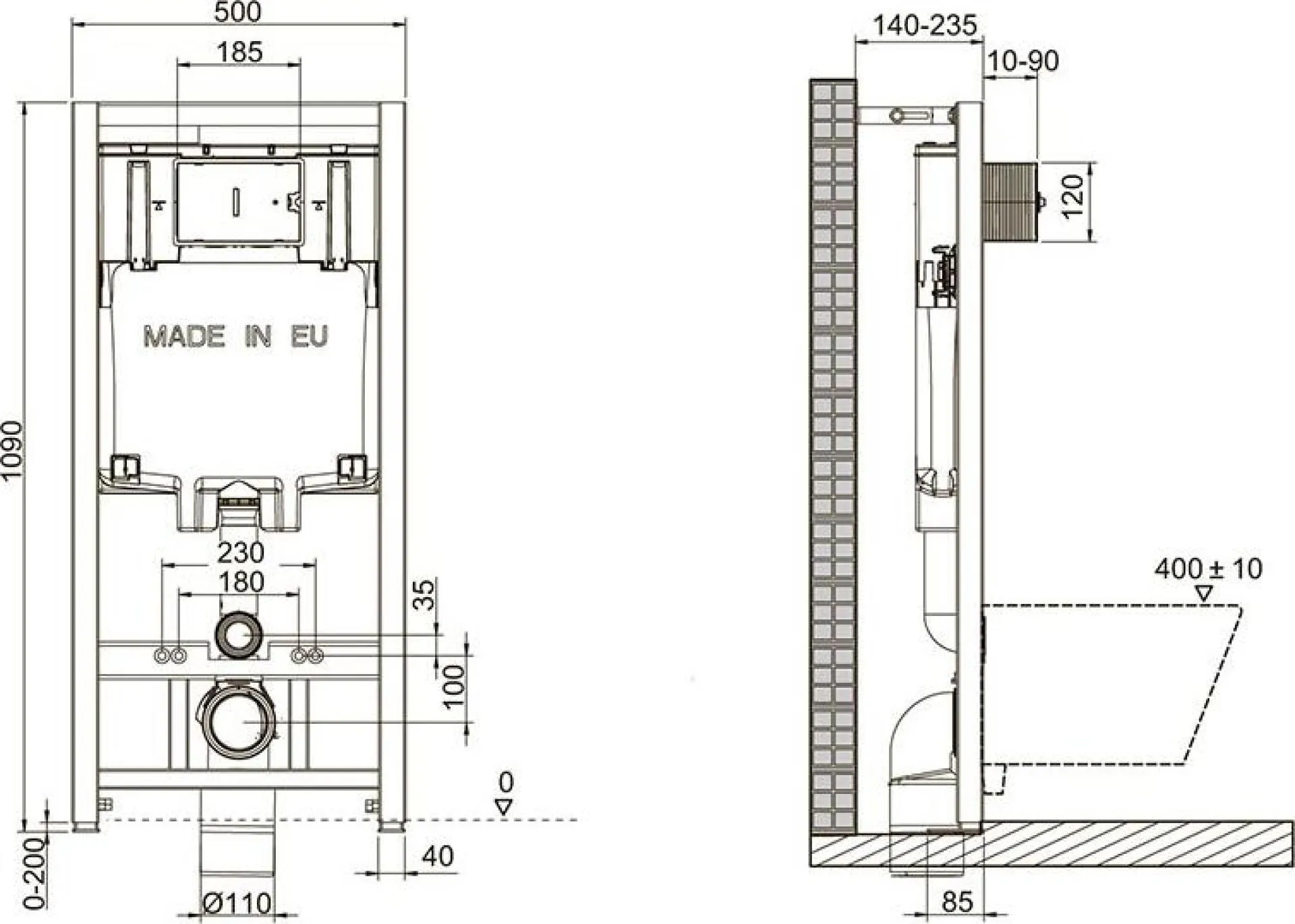 E21822-CP Система инсталляции 3/6л с кнопкой смыва хром