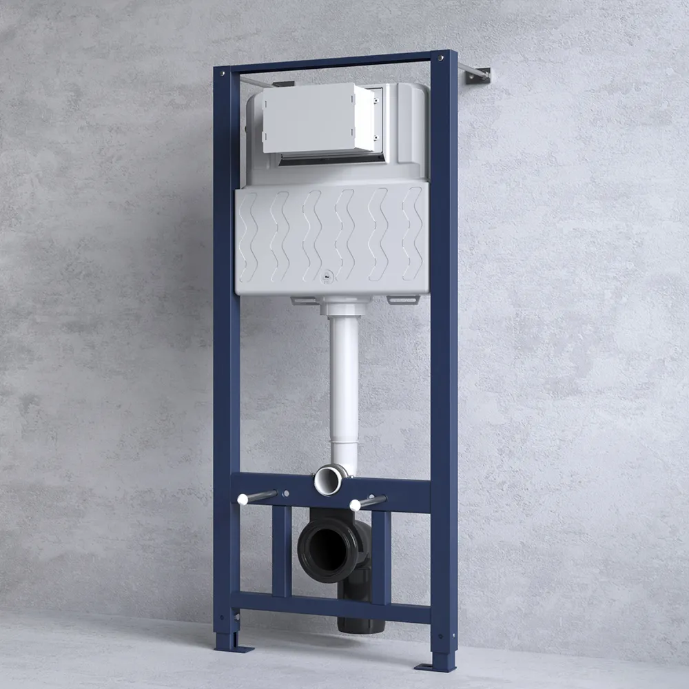 Максимально полная комплектация - все необходимые крепления патрубки звукоизолирующая прокладка в комплекте. Вертикальные ребра жесткости в конструкции рамы – дополнительная опора в месте давления керамики на стену. Благодаря им инсталляция более универсальная и подходит для унитазов любых размеров включая унитазы с небольшой контактной поверхностью. Нет необходимости докупать дополнительные аксессуары для монтажа таких унитазов.