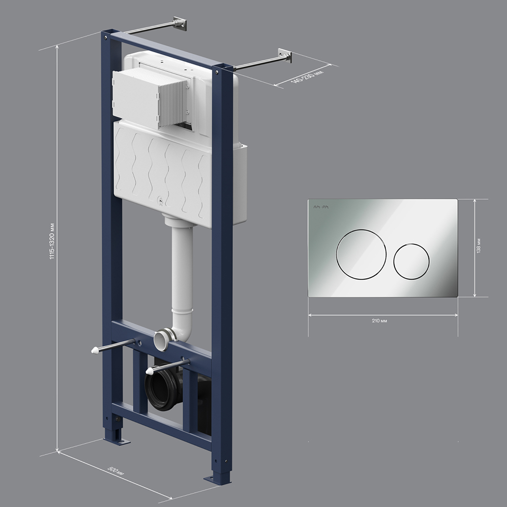 Максимально полная комплектация - все необходимые крепления патрубки звукоизолирующая прокладка в комплекте. Вертикальные ребра жесткости в конструкции рамы – дополнительная опора в месте давления керамики на стену. Благодаря им инсталляция более универсальная и подходит для унитазов любых размеров включая унитазы с небольшой контактной поверхностью. Нет необходимости докупать дополнительные аксессуары для монтажа таких унитазов.