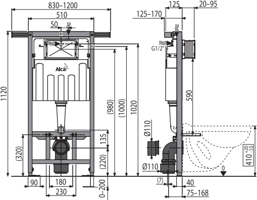 Система инсталляции для унитазов AlcaPlast Jadromodul AM102/1120
