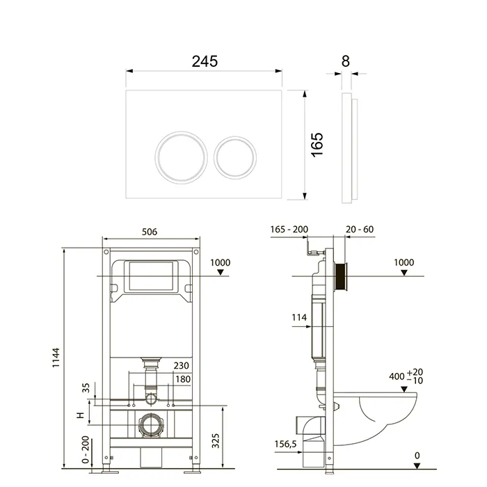 TECEspring комплект 4 в 1 Застенный модуль,панель смыва с круглыми кнопками, хром глянцевый
