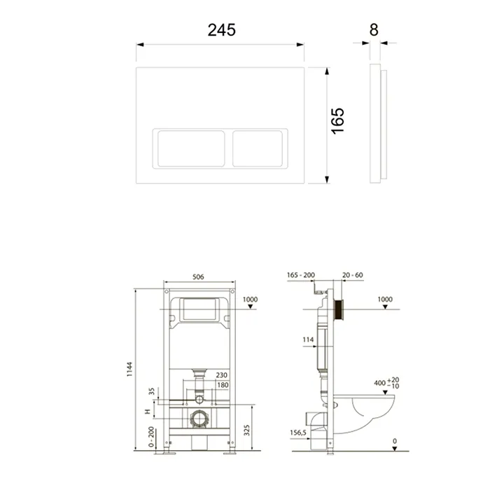 TECEspring комплект 4 в 1 Застенный модуль,панель смыва с прямоугольными кнопками, черный матовый
