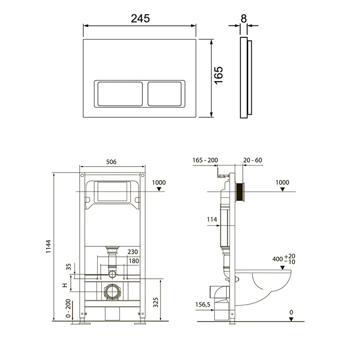 TECEspring комплект 4 в 1 Застенный модуль,панель смыва с прямоугольными кнопками, хром матовый