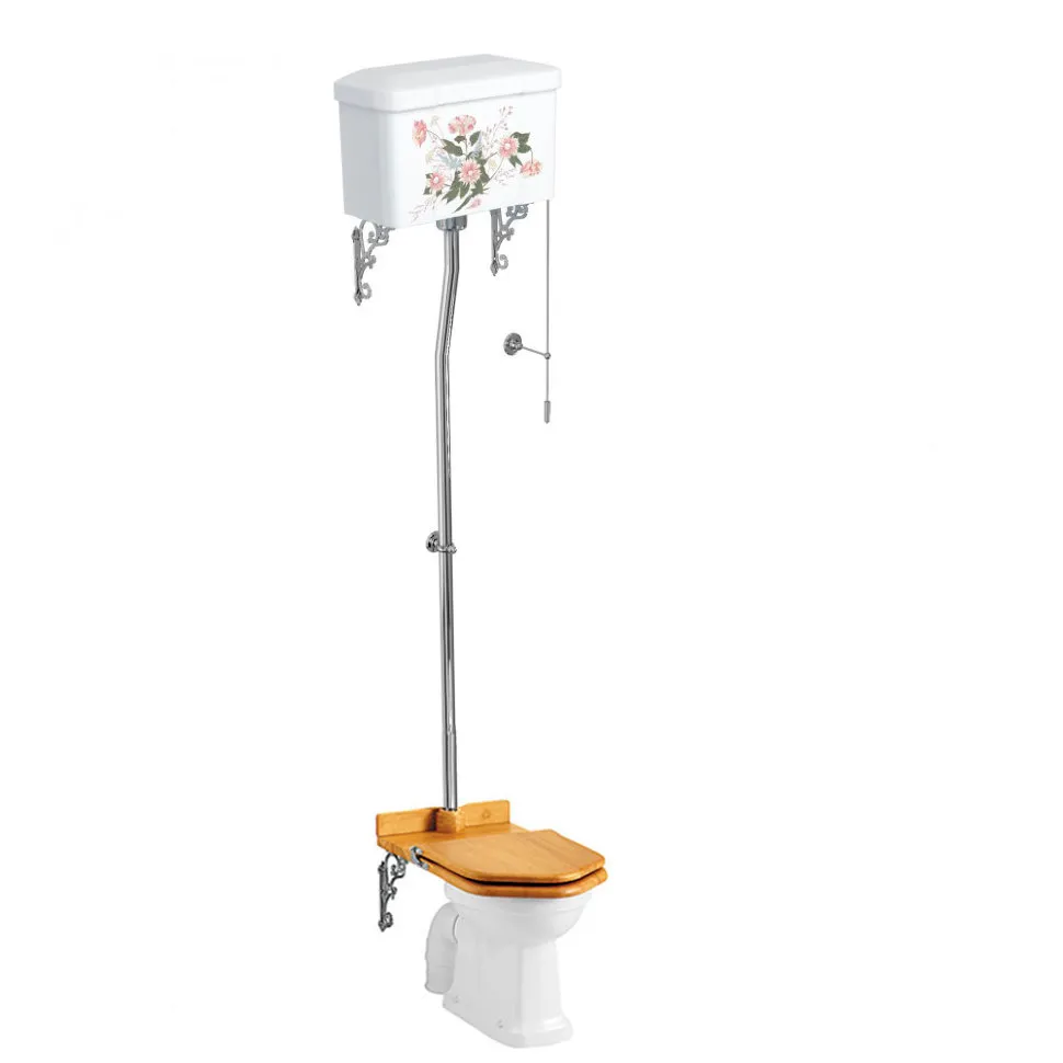 Этот шикарный унитаз – не просто предмет сантехники, а великолепное украшение для гигиенической комнаты, оформленной в имперском стиле. Несколько резкие, но изысканные формы чаши, оригинальная крышка, высокий бачок, элементы декора, все это делает комплект сдержанно элегантным.