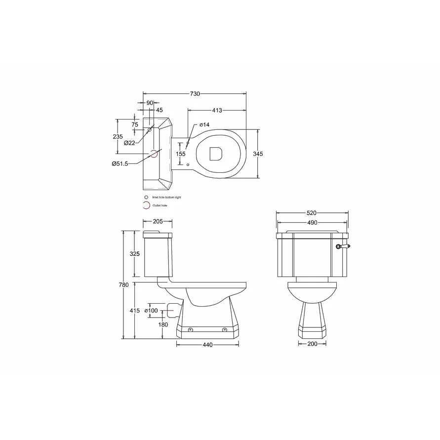 Бачок для унитаза Burlington Gold C1 GOLD (C1+SP390) белый/золото