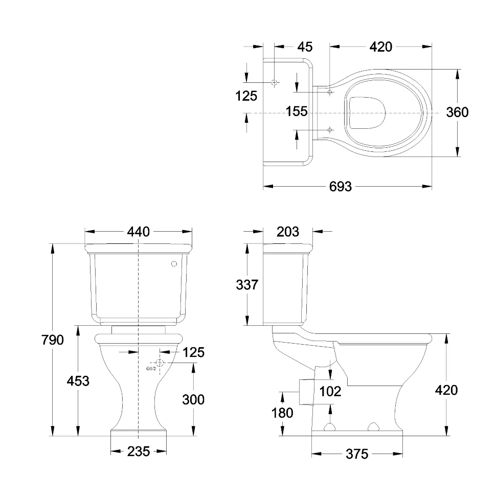 Бачок для унитаза Burlington Guild GU7005CW белый