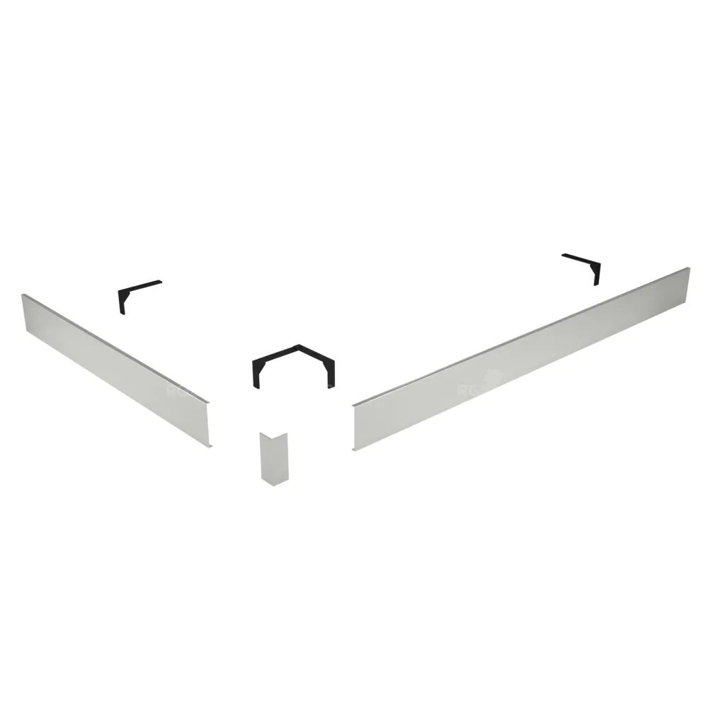 Декоративный экран предназначен для установки между поддоном и полом для того что бы скрыть элементы сливной системы (сифон, гофра). Высота экрана 10 см, изготовлен из алюминия.