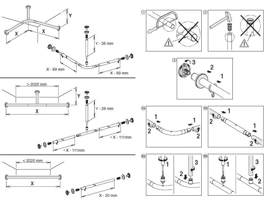 Набор штанг для душевых занавесокДля прямоугольных душевых зон
