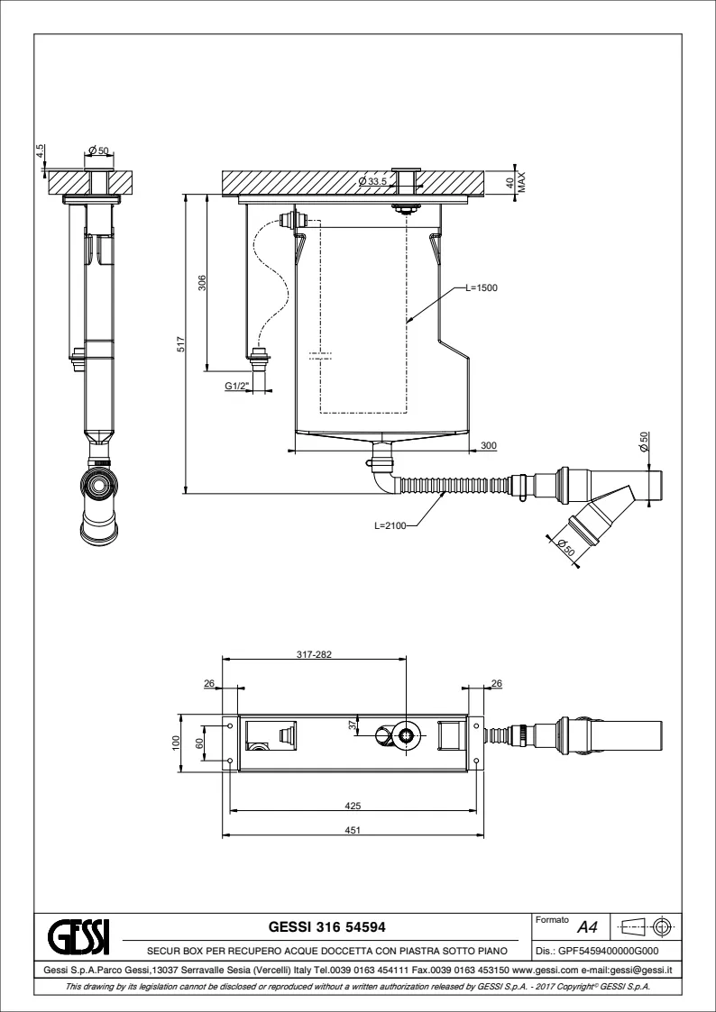 Система сбора воды для ручного душа Gessi 54594.707 Black Metal Brushed PVD