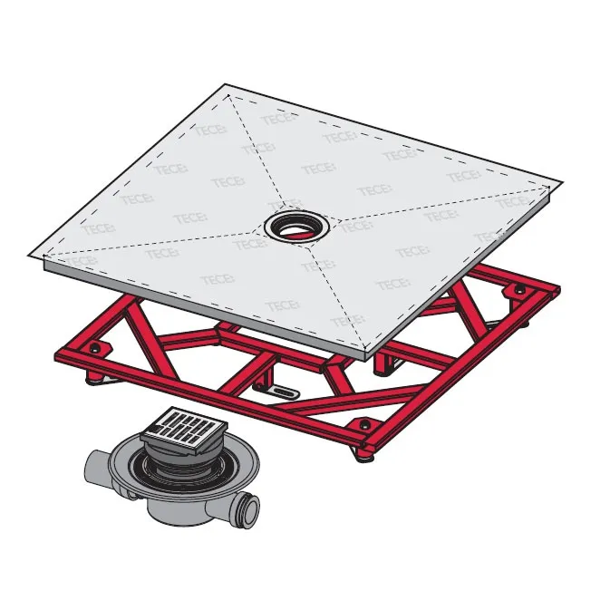 Водонепроницаемая основа для плитки 1000*1000 мм. Водонепроницаемая основа для монтажа плитки. Полностью готова для укладки плитки. Имеет уклон 2-3% к центральному отверстию для слива. Основой системы TECEdrainboard является прочная полиуретановая плита, оклеенная гидроизоляционным материалом. Она уже имеет в своей конструкции необходимые углы наклона, обеспечивающие создание правильной системы слива. TECEdrainboard используется в качестве основы для укладки плитки любого размера – от большой дизайнерской до мозаичной. Такая универсальность особенно важна во время черновой отделки душевой, так как на этой стадии зачастую неясно какая именно плитка будет положена. Помимо полиуретанового твердого элемента система TECEdrainboard может комплектоваться нижней стальной рамой для подгона сливного трапа по высоте стяжки. Система TECEdrainboard позволяет выполнять монтаж и без использования специальной рамы, то есть прямо на стяжку или в выравнивающем слое. В этом случае полиуретановая основа приклеивается плиточным клеем прямо к полу. Гарантия - 10 лет, производство - Германия.
