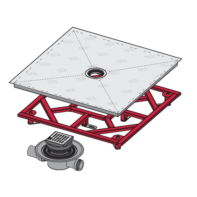 Монтажная рамка для основы под плитку 1000*1000 мм. Стальная рама для монтажа основы для плитки и сифона - позволяет с минимальными усилиями и без использования специальных навыков создать идеально ровную основу для монтажа плитки или мозаики. Регулировка по высоте (H) от 90 до 140 мм, не требует засыпки в месте монтажа. В комплект поставки не входит и докупается отдельно (рекомендуется): TECEdrainbase арт 660001 - Звукоизоляционный мат. Гарантия - 10 лет, производство - Германия.