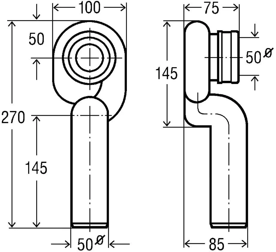 492458 Вакуумный сифон для писсуара D=50 мм, с вертик.отводом, с манж.уплотнением и гидрозатвором, объем слива 1-4л/мин, модель 3233.8