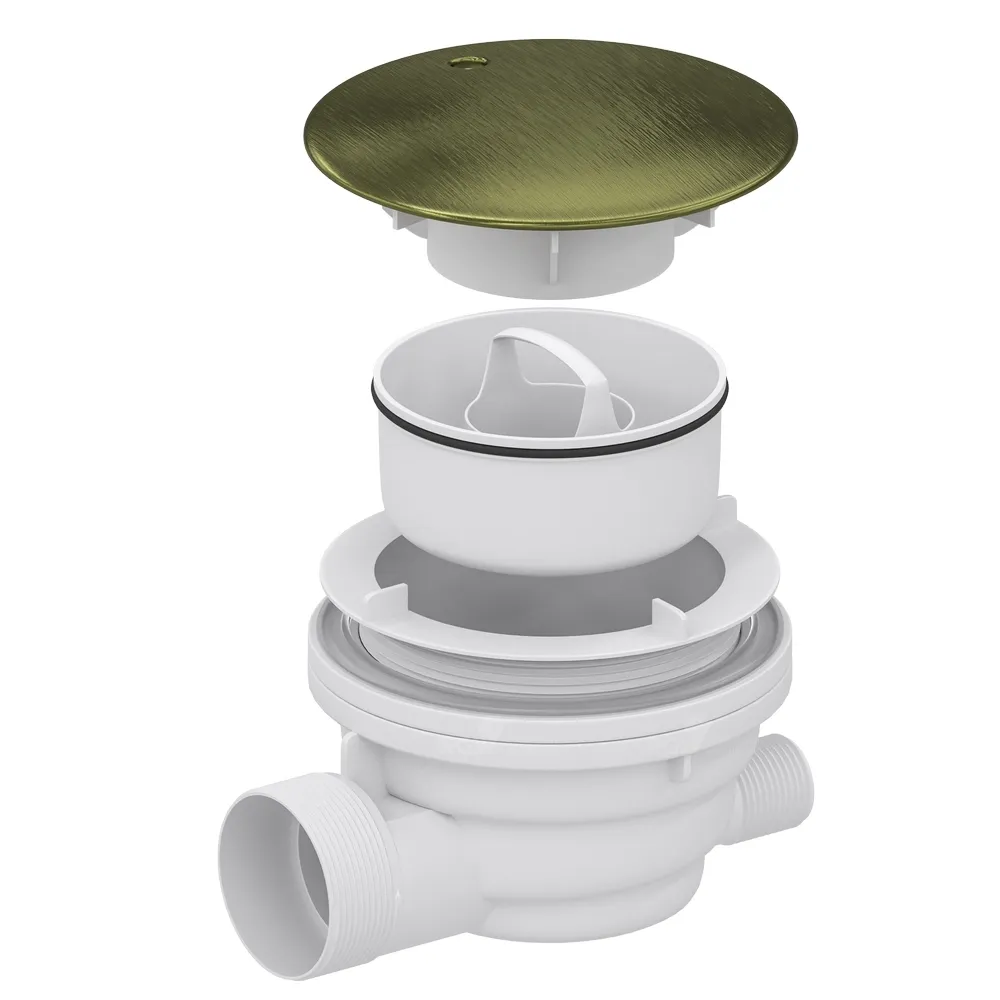 Сифон Velplex QYD-01 со съемным гидрозатвором для душевых поддонов. Верхняя крышка сифона бронзового цвета.