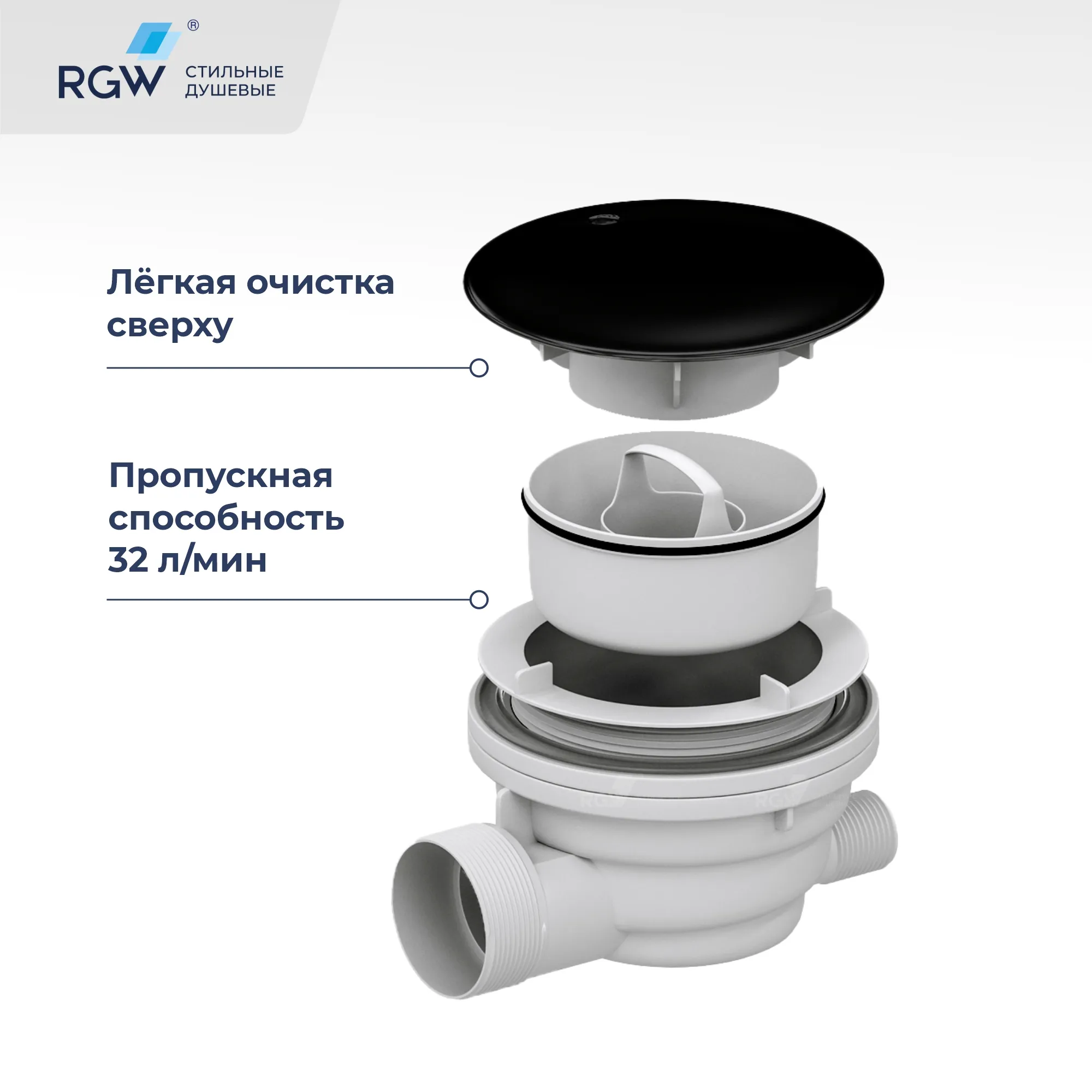 Сифон Velplex QYD-01 со съемным гидрозатвором для душевых поддонов. Верхняя крышка сифона черного цвета.