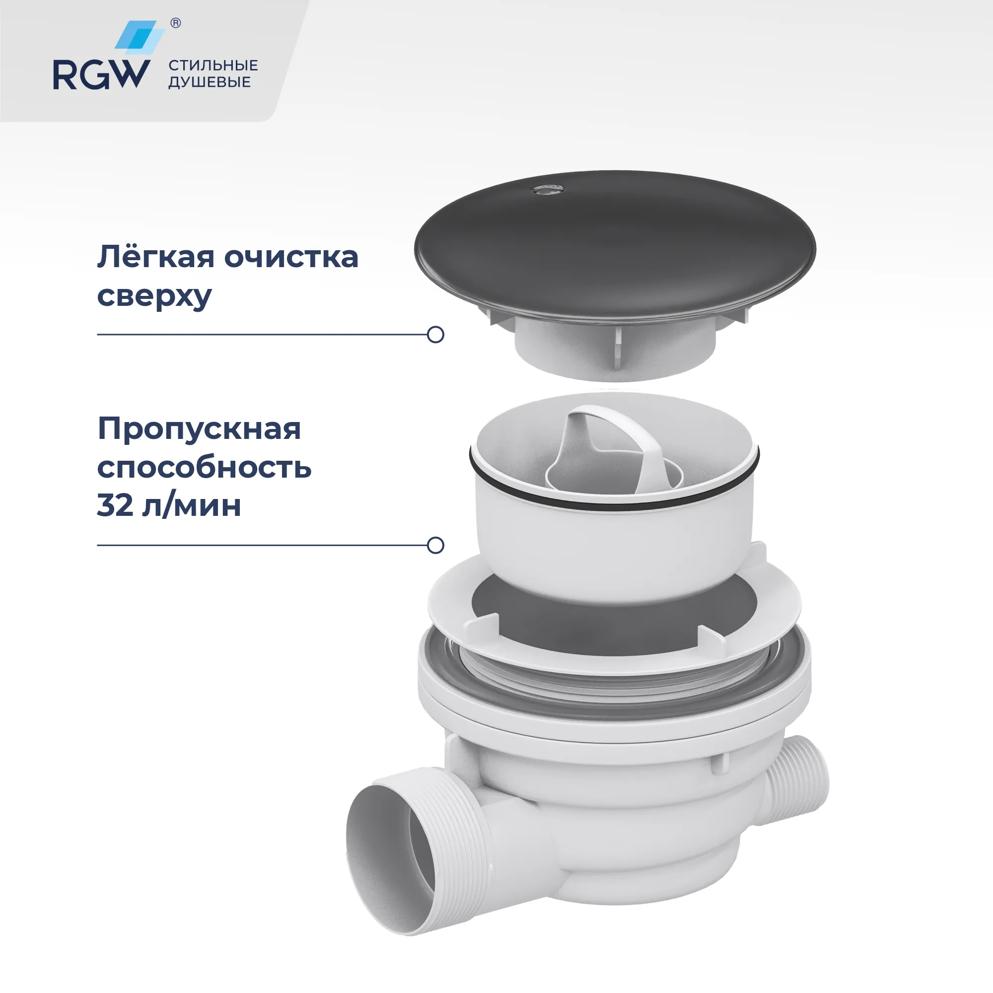 Сифон Velplex QYD-01 со съемным гидрозатвором для душевых поддонов. Верхняя крышка сифона цвета графит.