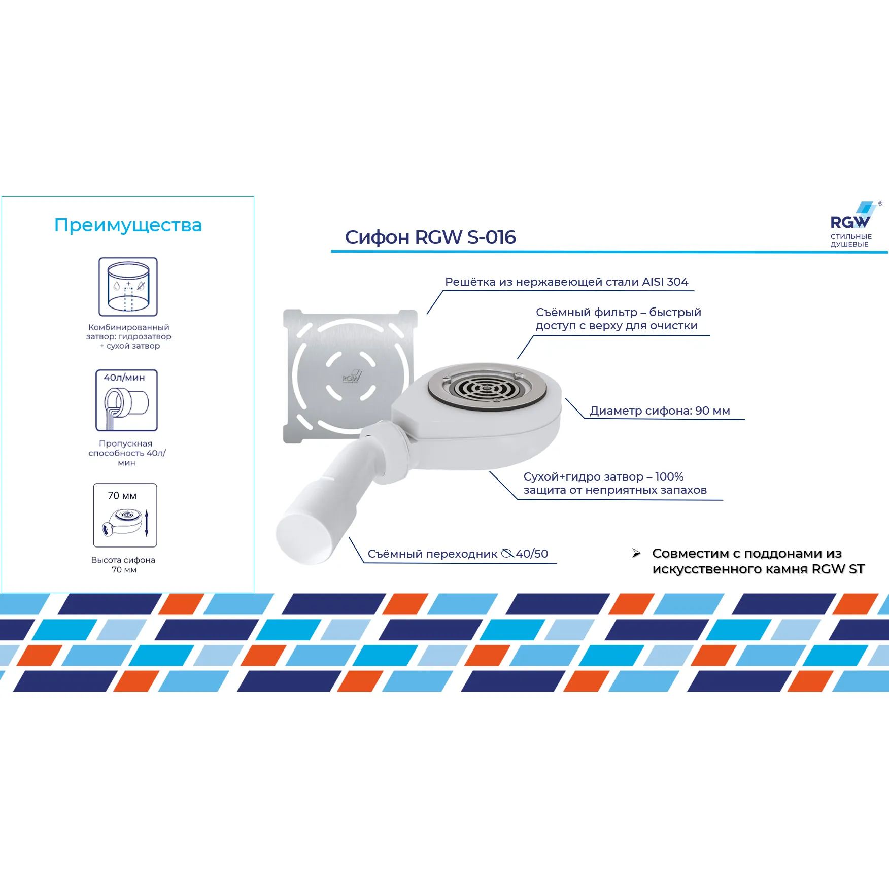 Cифон RGW S-016 разработан для поддонов из искусственного камня RGW ST, с учетом пожеланий покупателей!