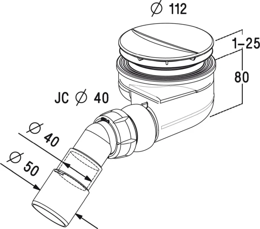 Сифон под отверстие в поддоне Ø90 mm, самоочищающийся, высокая пропускная способность 30л/мин. Декоративная хромированная крышка диаметром 112мм, угол изгиба сливной трубы 135°. Шарнирная система позволяет регулировать направление сливной трубы. Диаметр сливной трубы 40/50мм. Высота сифона 80мм.