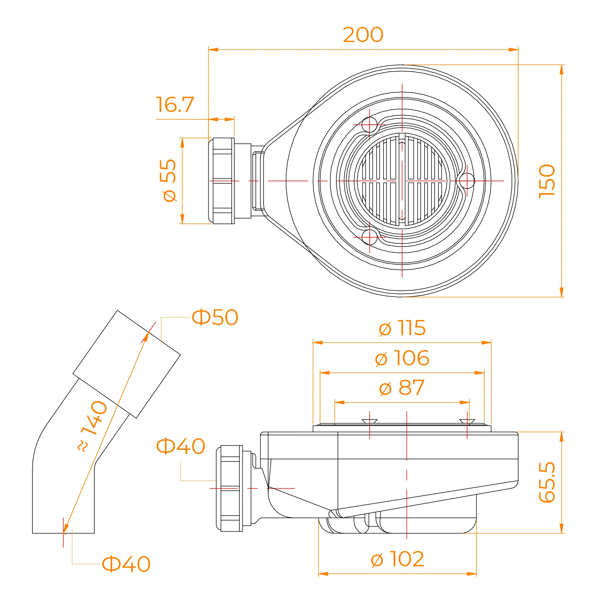 Высокая пропускная способность сифона — 40 л/мин. Обеспечивает быстрый сток воды, что компенсирует отсутствие глубокой купели в поддоне.