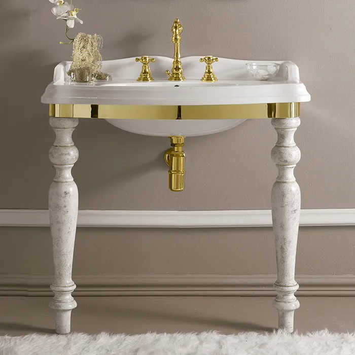 3SC Consolle Консоль Firenze 90х56хh97см, с раковиной LA02 и сифоном, напольный, цвет: золото 24к. Lucido FI3090GD