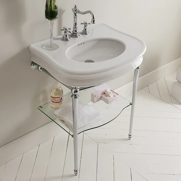 3SC Consollee Консоль Florian 90х54хh86см, с раковиной LA12, сифоном и стекл.полочкой, напольный, цвет: хром FL3090SL
