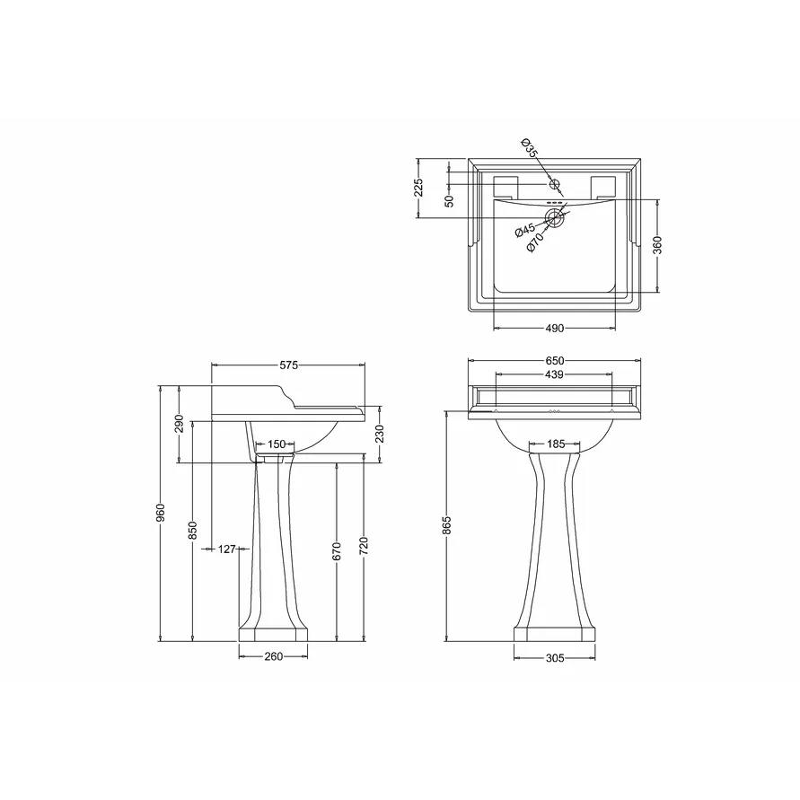 Квадратная раковина на "королевском" пьедестале Regal, который выше стандартного на 6 см, что делает его более удобным для высоких людей, являющая собой яркий образец классического английского стиля, идеально сочетает комфорт и удобство использования с простотой исполнения.