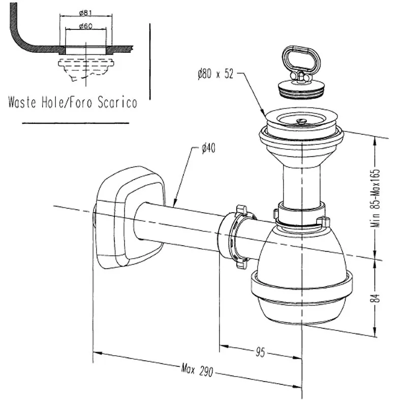 Выпуск пластиковый для хозяйственной раковины HATRIA SPECIALS YXZ801 в комплекте с сифоном, цвет белый. Подходит для всех хозяйственных раковин HATRIA.