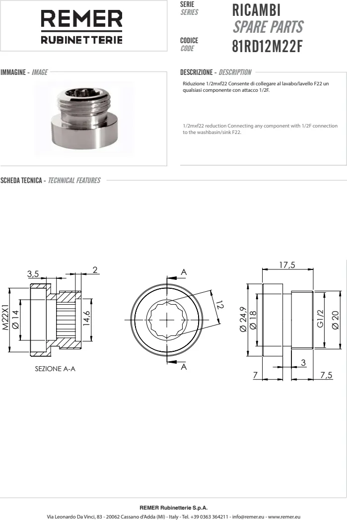 Переходник Remer 1/2"ш*М22г 81RD12M22F