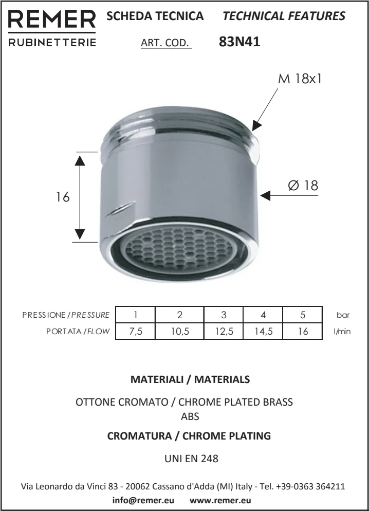 Смесители Remer производятся из высококачественной латуни с низким содержанием свинца, что соответствует европейским стандартам безопасности. Поверхности покрываются многослойным хромом или современными декоративными покрытиями (черный матовый, бронза, золото, медь). Для внутренних элементов используются керамические картриджи и аэраторы Neoperl, которые гарантируют плавность регулировки температуры и экономию воды.