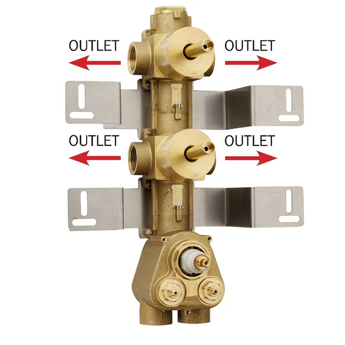Деталь для встроенного монтажа, для термостатического смесителя, высокой пропускной способности, подключение на 3/4 ”, 4 ВЫХОДА, (С ДЕВИАТОРОМ 2 НАПРАВЛЕНИЯ) установка вертикальная/горизонтальная