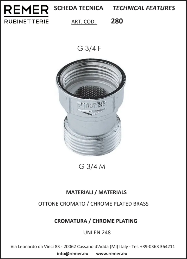 Фильтр для стиральной машины Remer 3/4" RR 280
