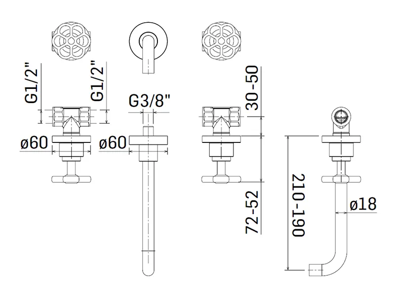 Итальянский настенный смеситель для раковины MAMOLI 451700000021, из уникальной коллекции HIPSTER, встраиваемый, настенный, с тремя отверстиями. Как и все смесители бренда MAMOLI, он комплектуется керамическим картриджем, что гарантирует максимально длительный срок эксплуатации и неповторимую мягкость при переключении оригинальных хипстер вентилей.