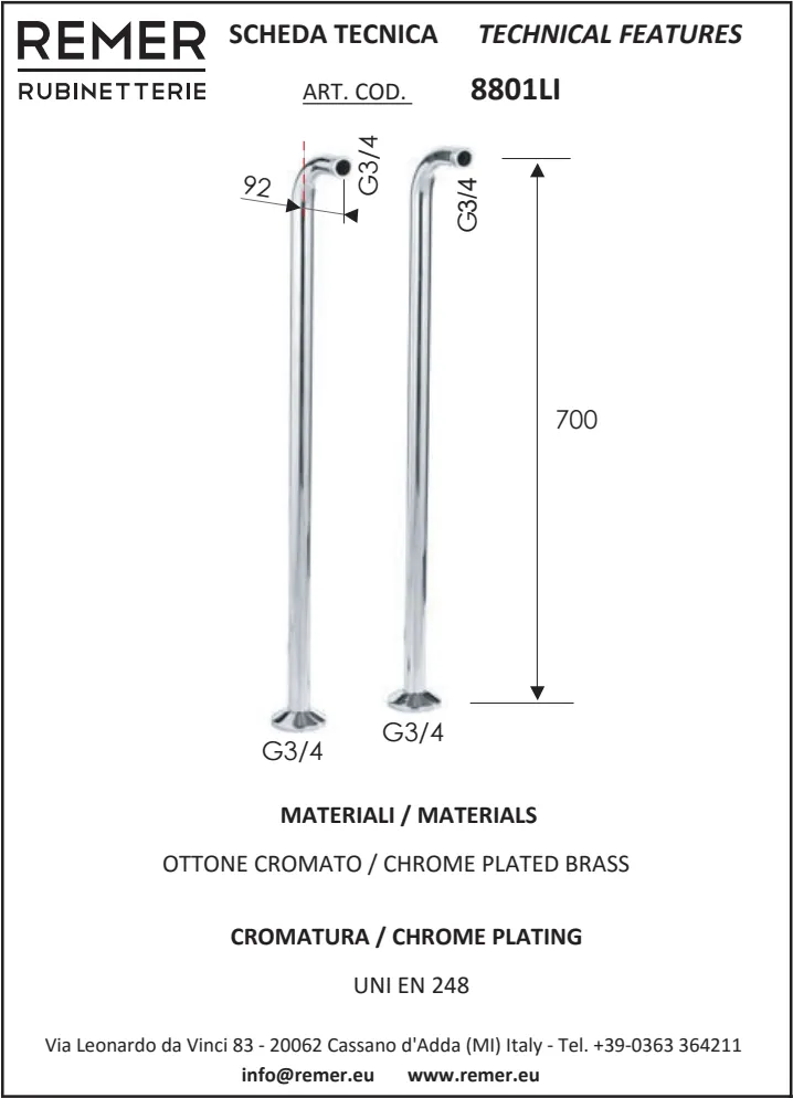Итальянский бренд Remer Rubinetterie более 50 лет специализируется на выпуске смесителей, душевых систем и аксессуаров для ванной комнаты и кухни. Главная особенность продукции Remer — сочетание классического итальянского дизайна и современных технологий. В отличие от многих конкурентов, компания выпускает полный цикл изделий: от литейного производства латунных корпусов до хромирования и финальной сборки. Это обеспечивает стабильное качество, долговечность и оптимальную цену для европейской сантехники премиум-класса.