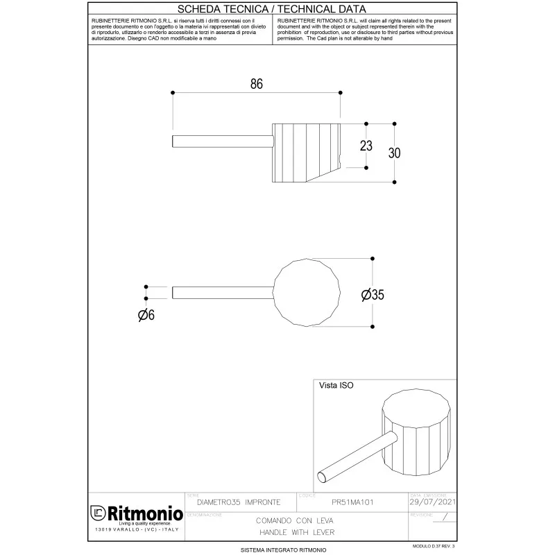 Ручка для смесителя Ritmonio Diametro35 Impronte хром PR51MA101CRL